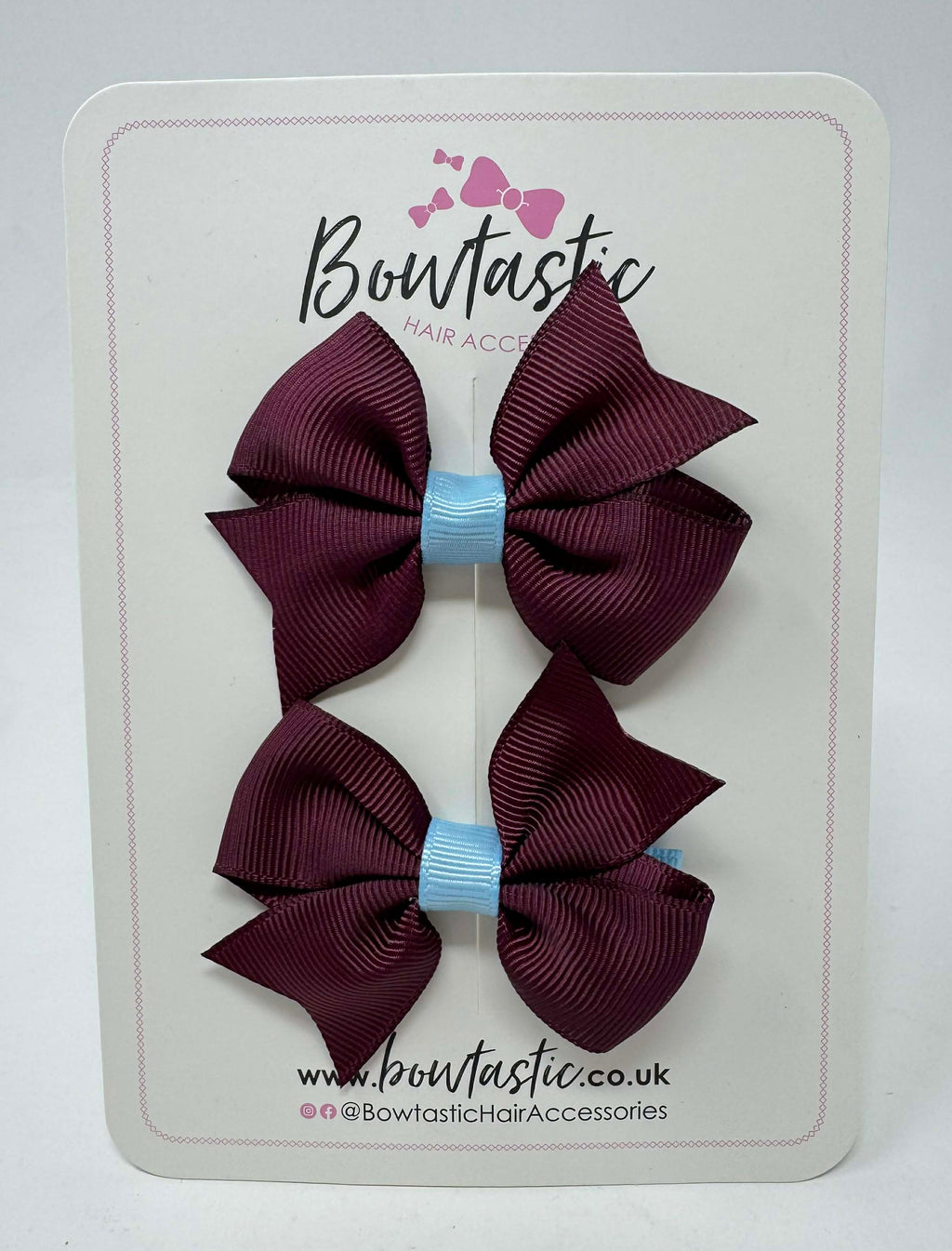 2 Inch Flat Bow - Burgundy & Blue Topaz - 2 Pack