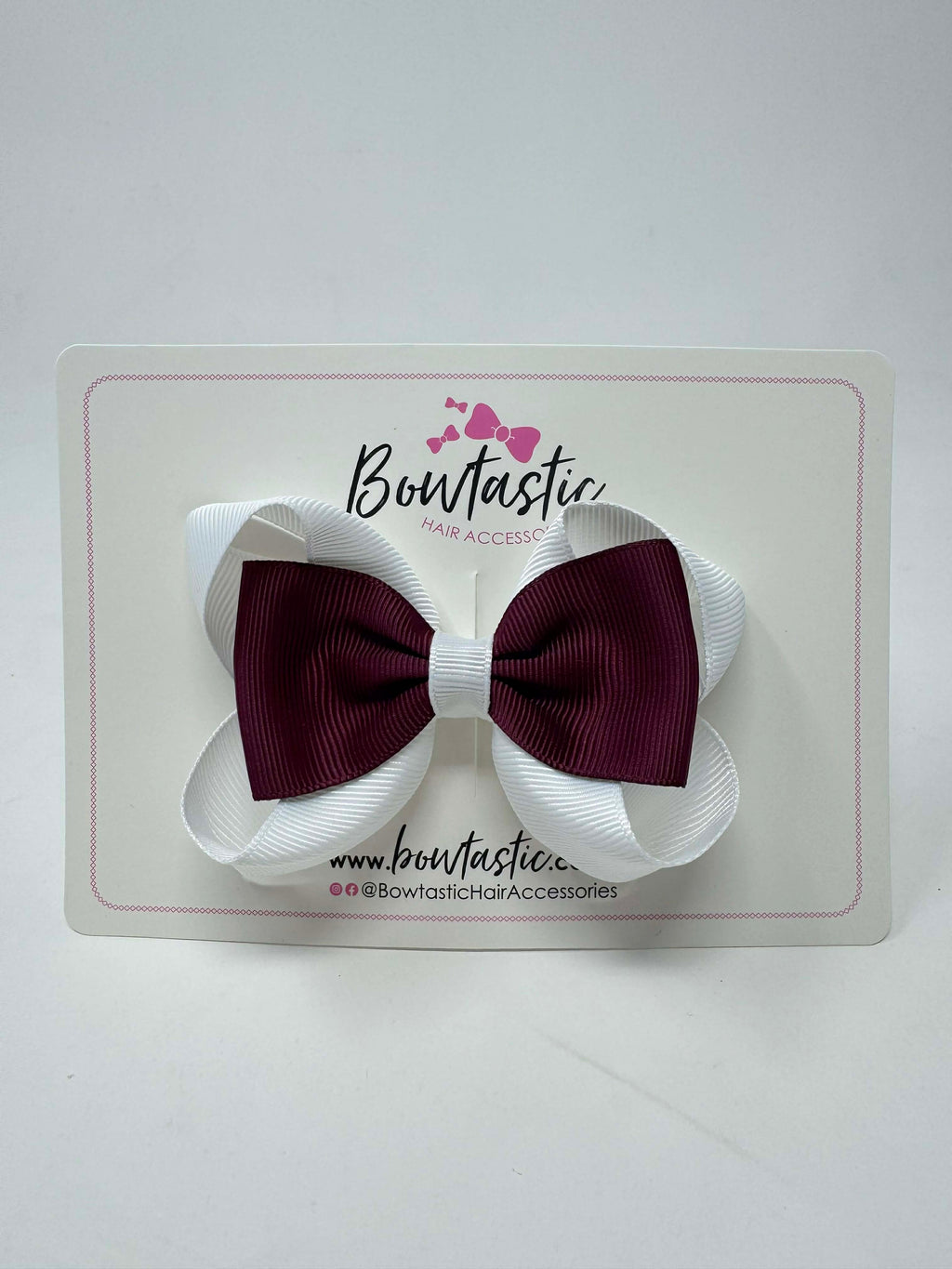3.5 Inch 2 Layer Tuxedo Bow Thin Elastic - Burgundy & White