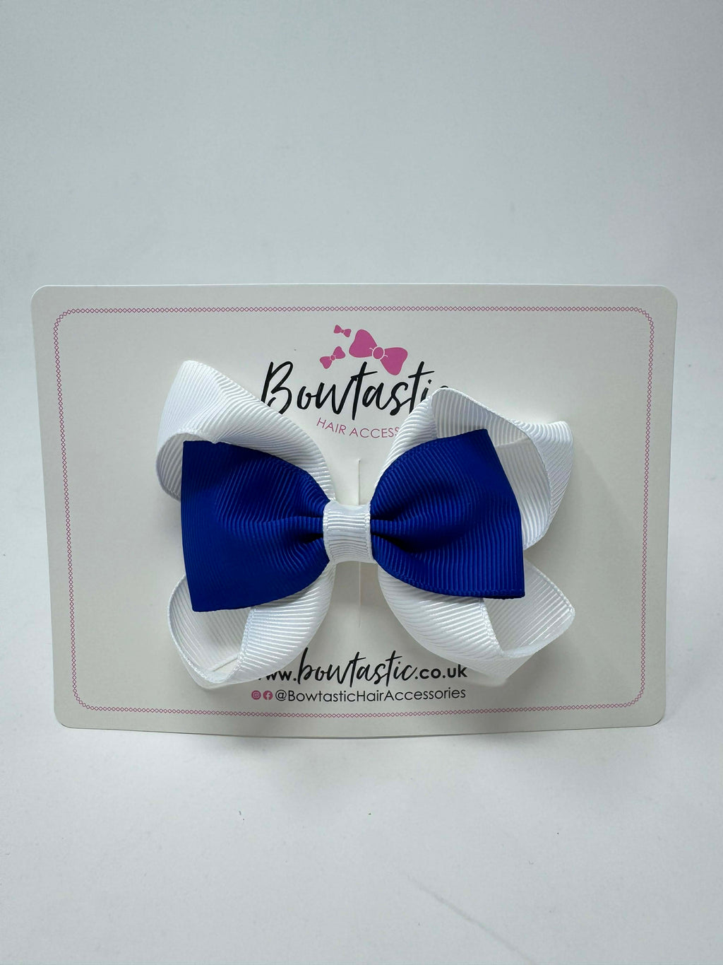 3.5 Inch 2 Layer Tuxedo Bow Thin Elastic - Cobalt & White