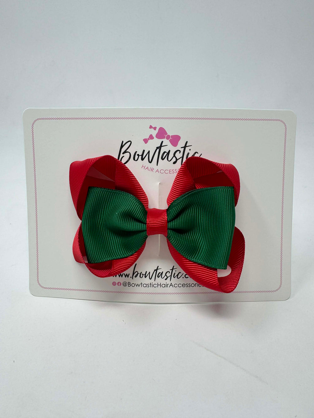3.5 Inch 2 Layer Tuxedo Bow Thin Elastic - Forest Green & Red