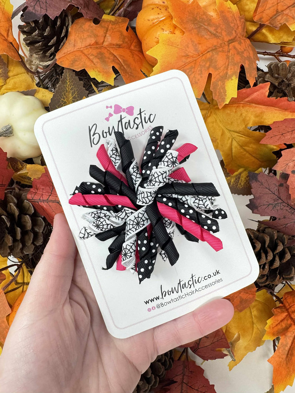 3.5 Inch Corker Bow - Shocking Pink, Black & White Spider's Web