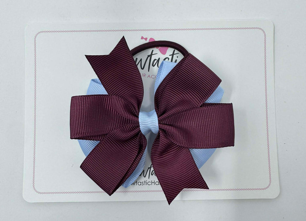 3.5 Inch Flat Double Bow Bobble - Burgundy & Bluebell