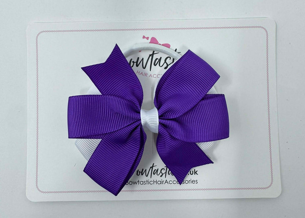 3.5 Inch Flat Double Bow Bobble - Purple & White