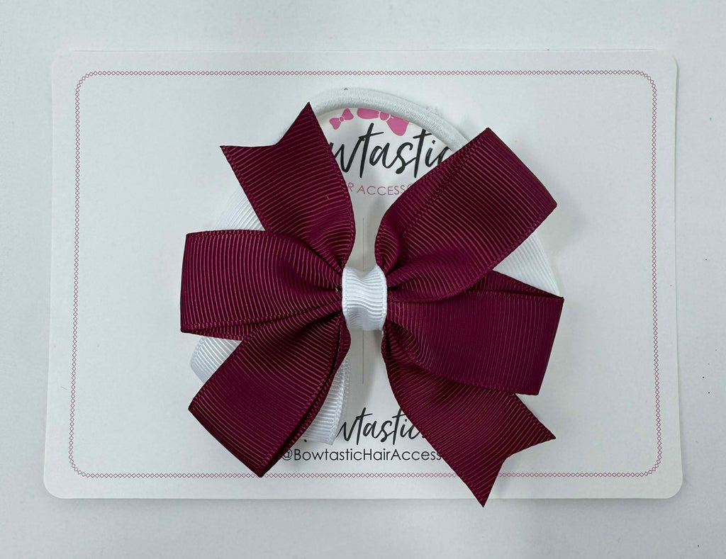 3.5 Inch Flat Double Bow Bobble - Wine & White