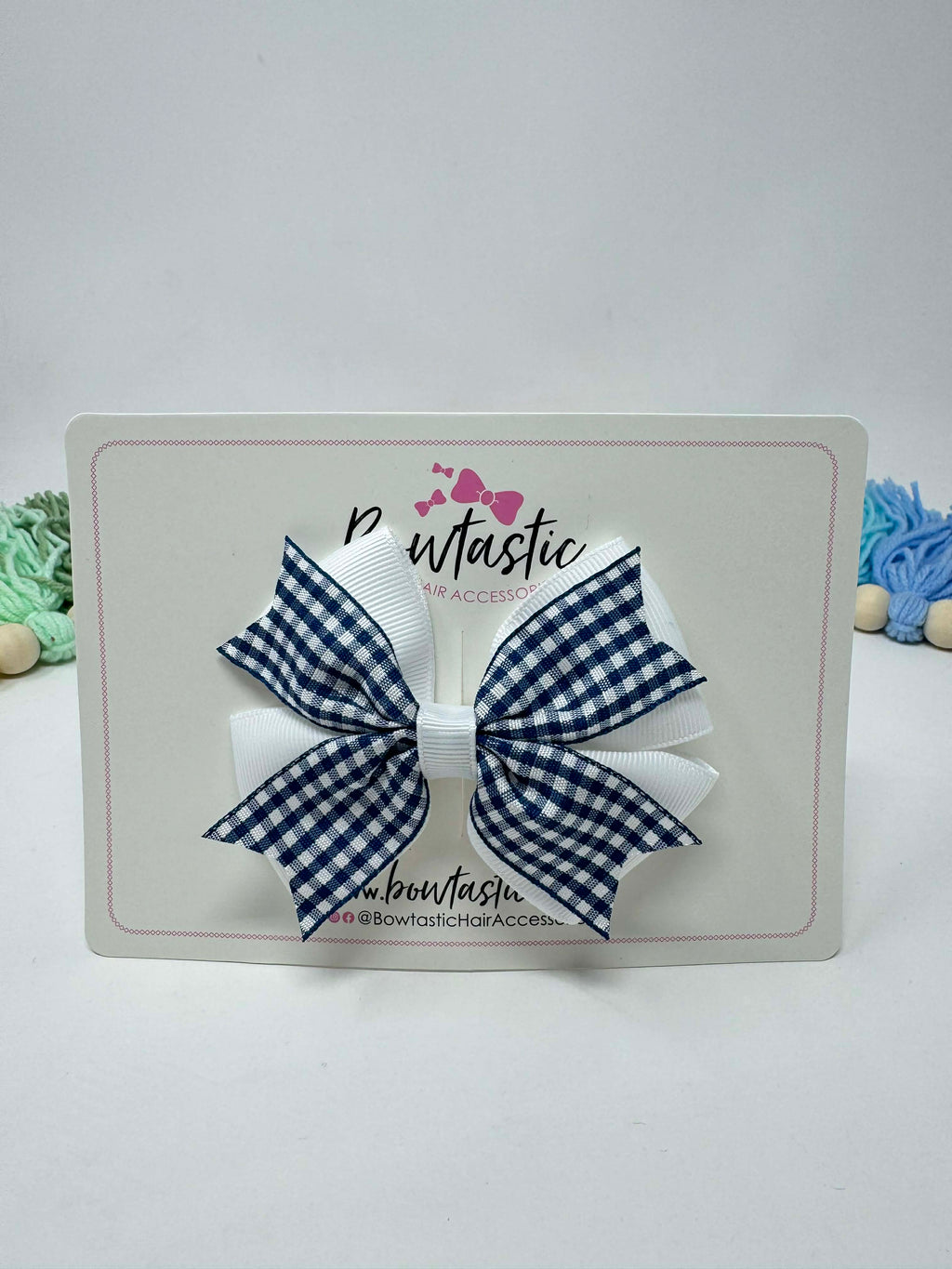 3.5 inch Flat Double Bow - Navy & White Gingham