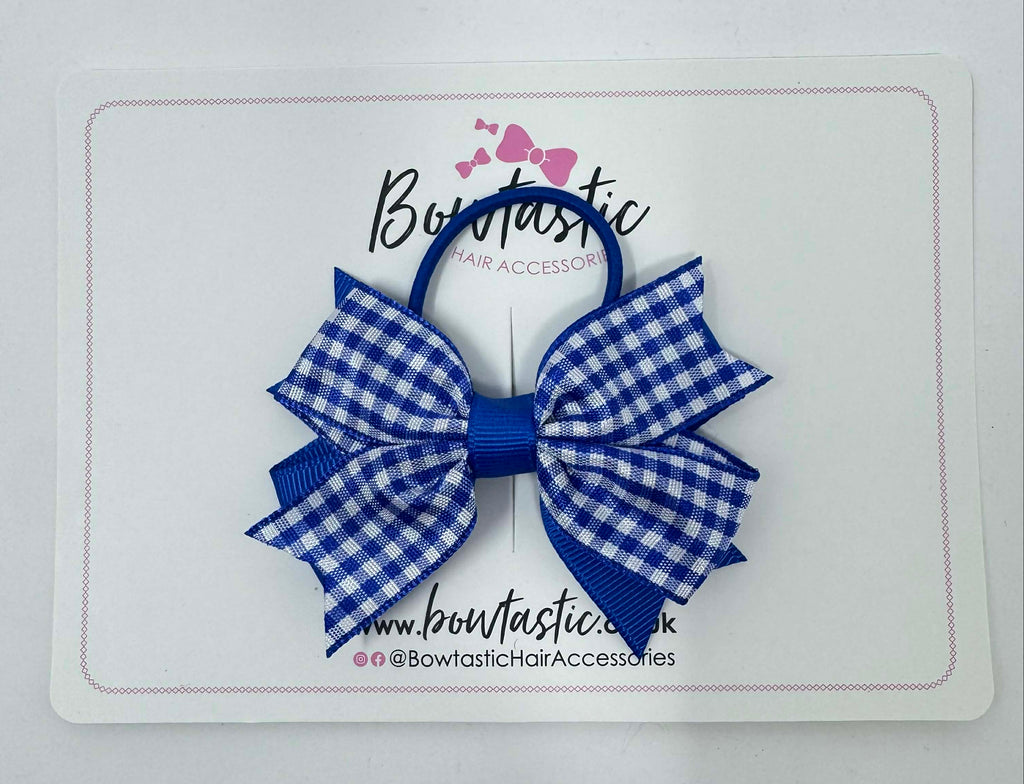 3 Inch Flat 2 Layer Bow Thin Elastic - Royal Blue Gingham
