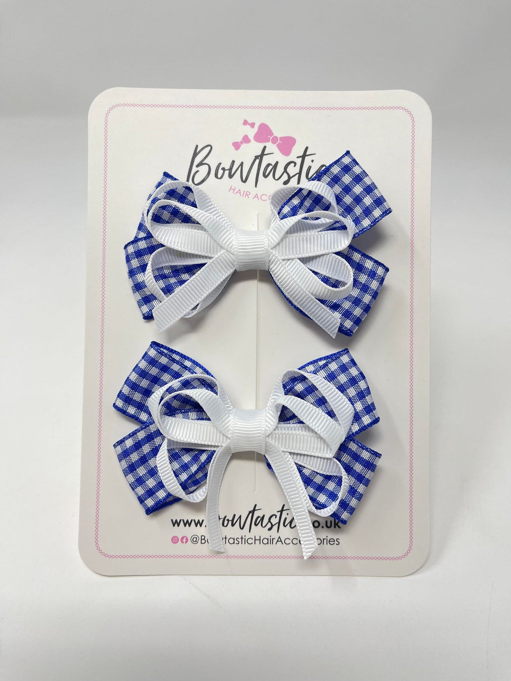 3 Inch Flat Bows - Royal Blue & White Gingham - 2 Pack