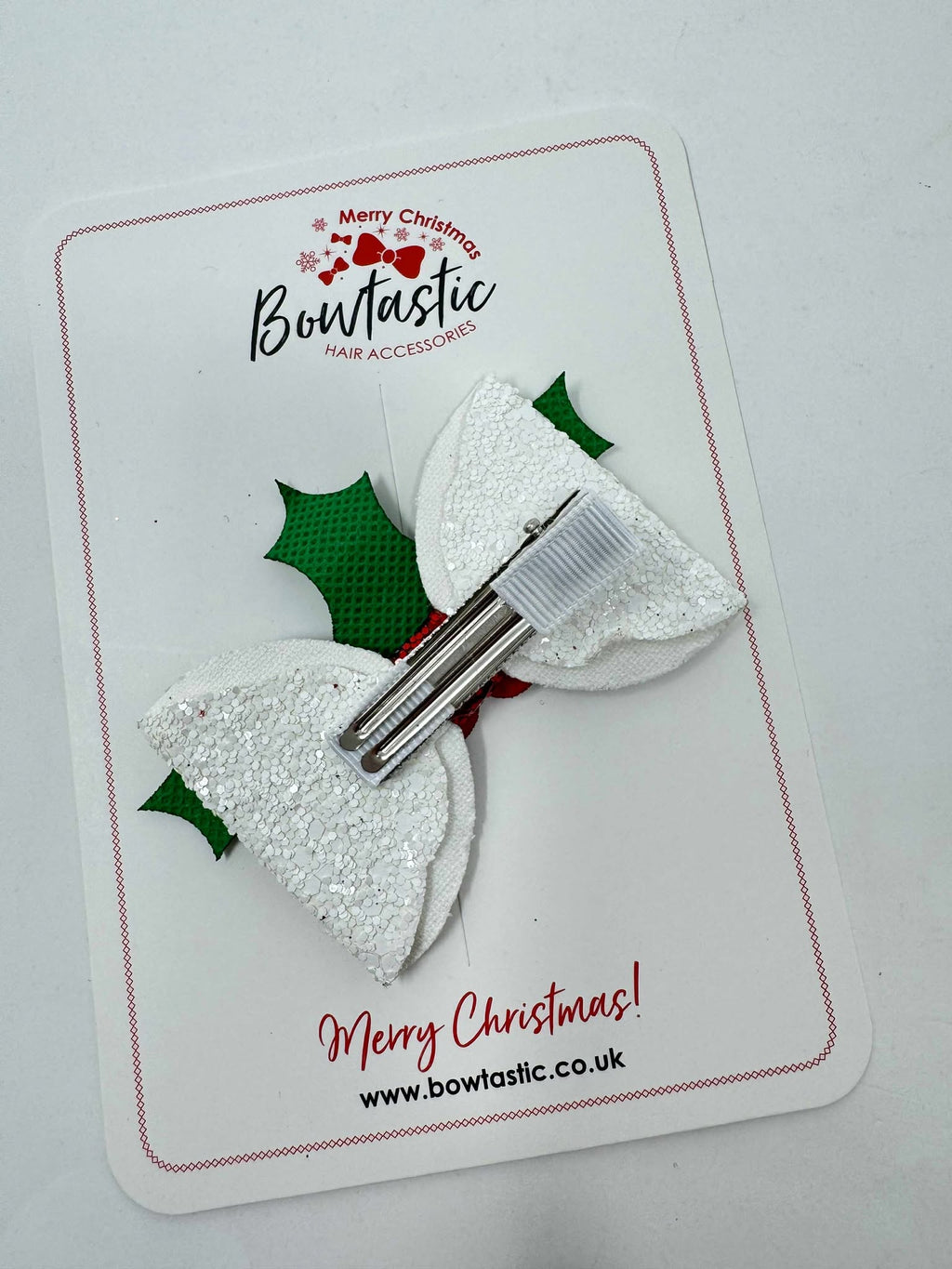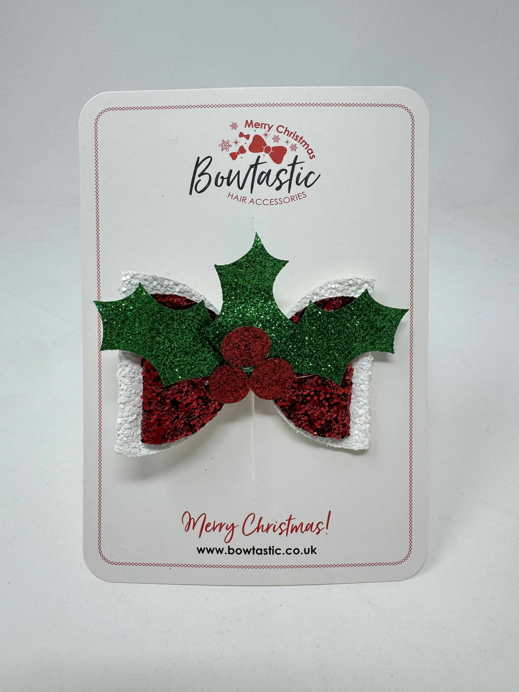 3 Inch Glitter Bow - Red, Green & White Holly