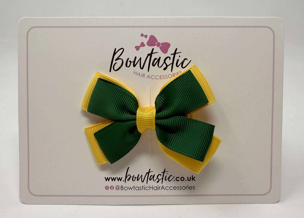 3 Inch Layer Butterfly Bow - Forest Green & Yellow Gold