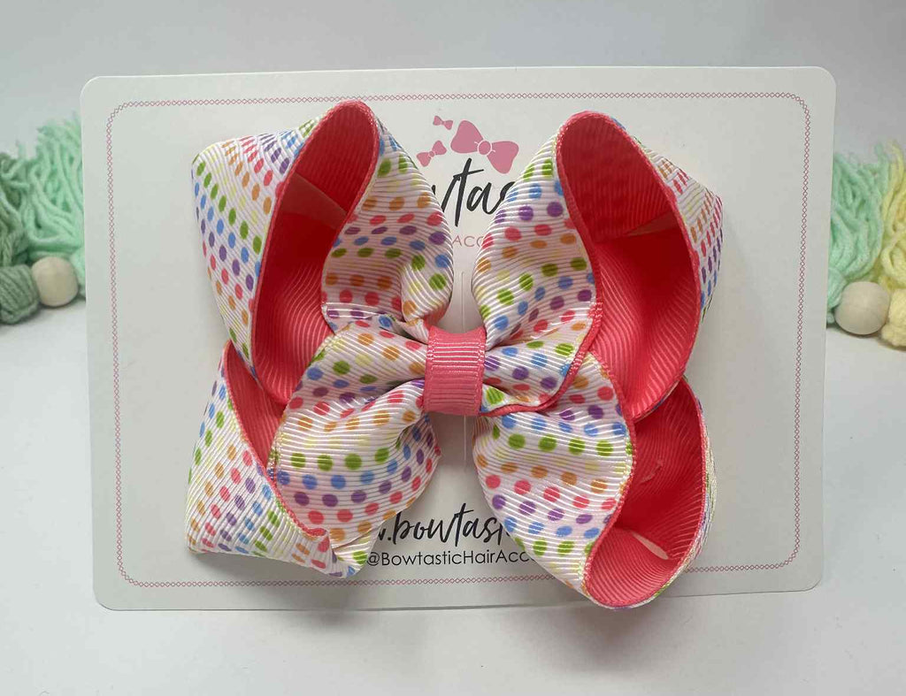 4 Inch Double Ribbon Bow - Hot Pink Polka Dot