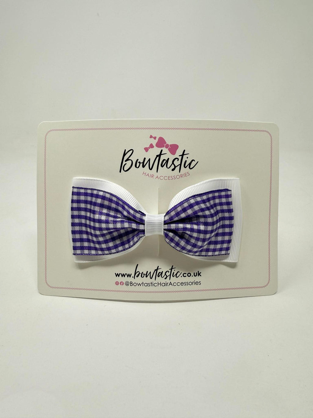 4 Inch Double Tuxedo Bow - Purple & White Gingham