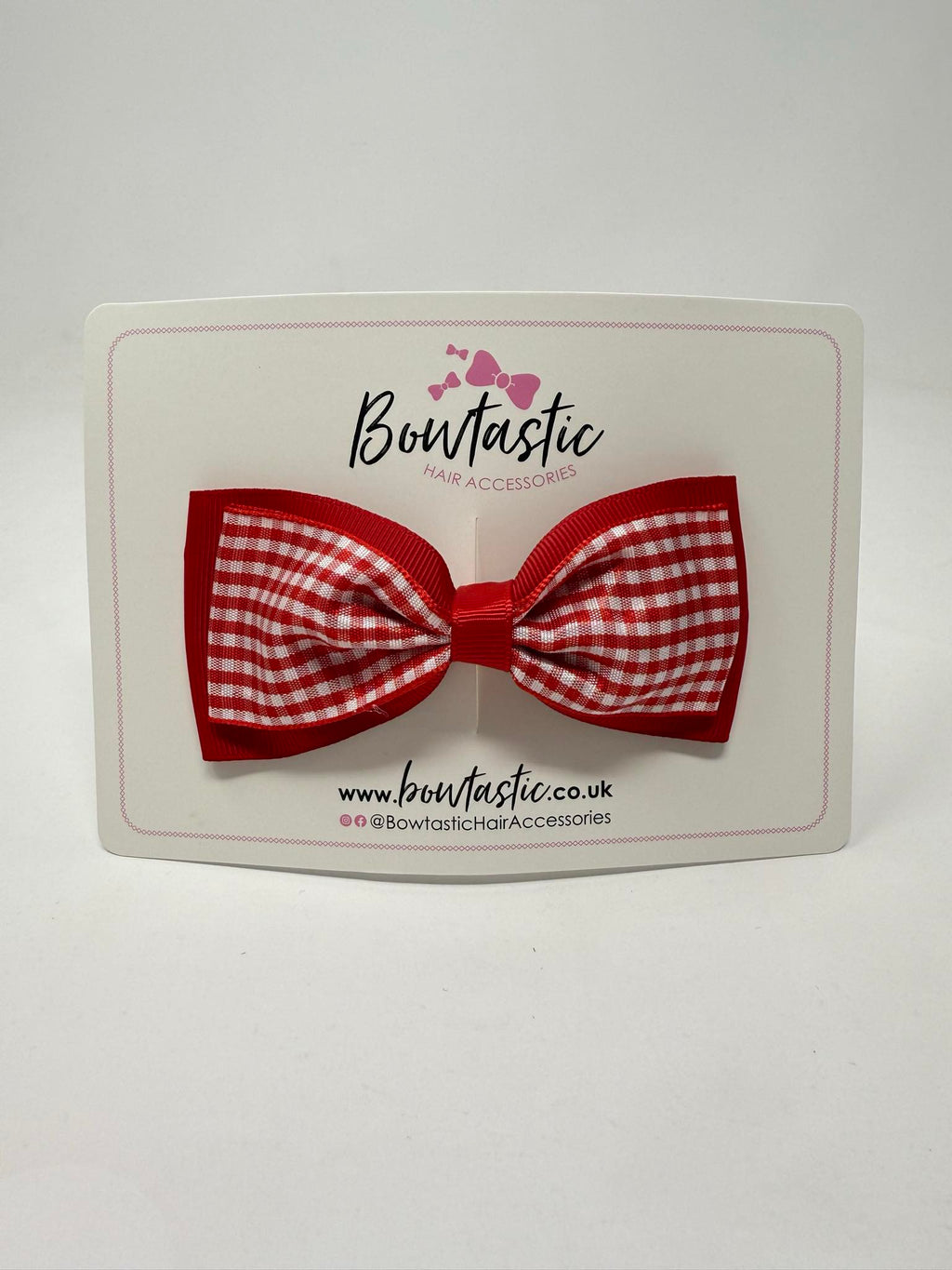 4 Inch Double Tuxedo Bow - Red & Red Gingham