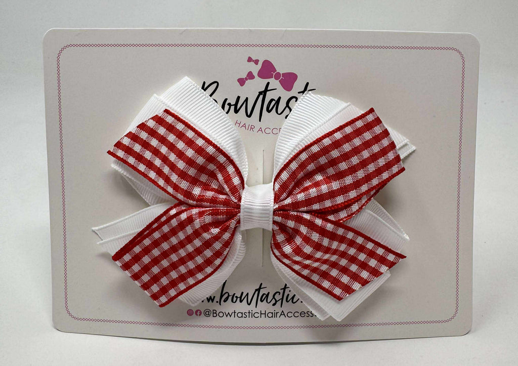4 Inch Flat 3 Layer Bow Bobble - Red & White Gingham