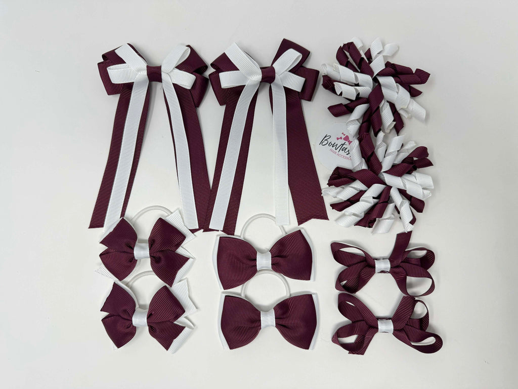 School Bundle - 3 Inch Bows - Burgundy & White - Clips & Bobbles