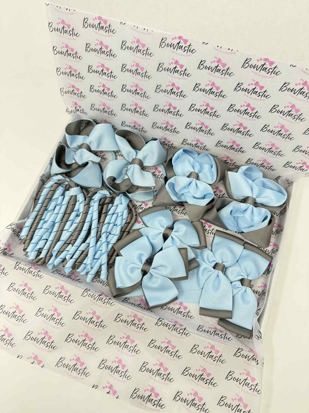 School Bundle - 5 Matching Pairs - Clips & Bobbles - Topaz & Metal Grey