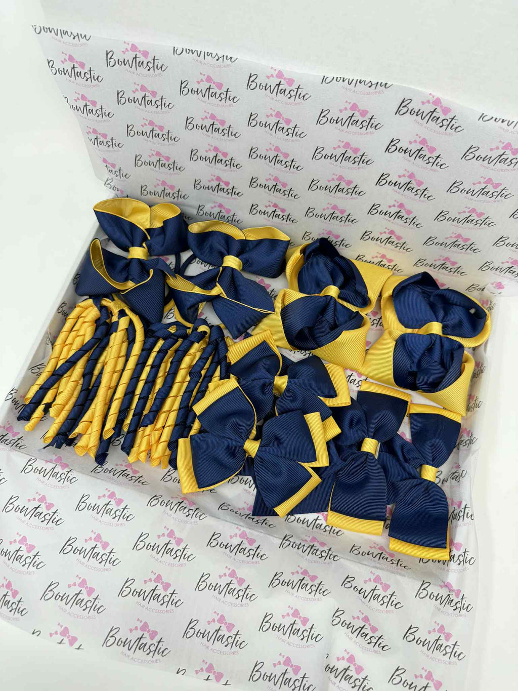 School Bundle - 5 Matching Pairs - Clips & Bobbles - Navy & Yellow Gold