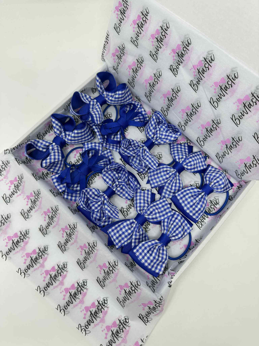 School Bundle - 3 Inch Bows Thin Elastic - Cobalt & Royal Blue Gingham - 10 Pack